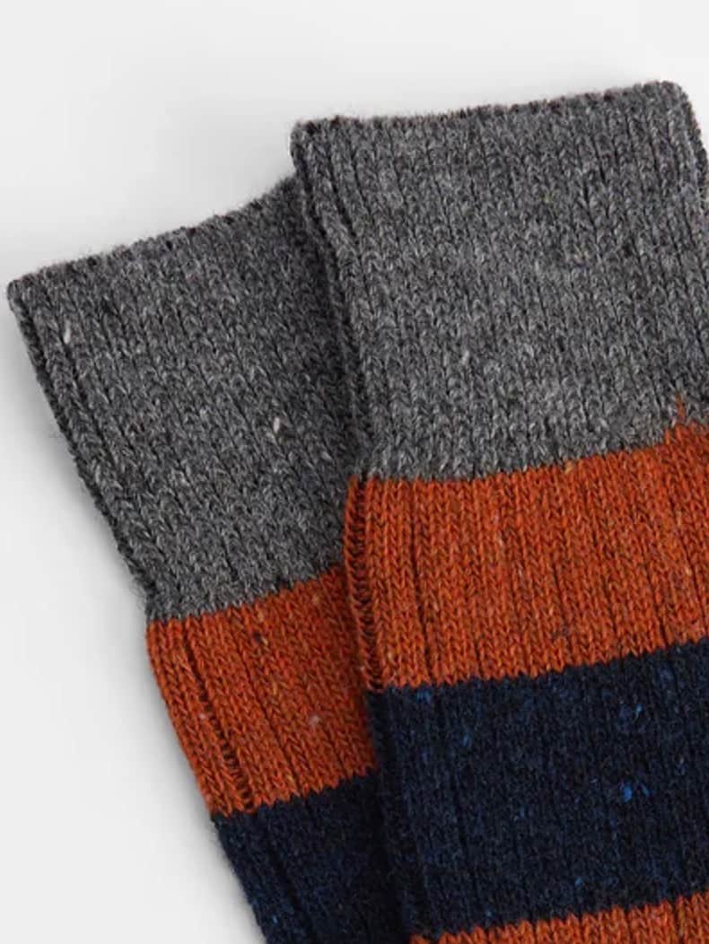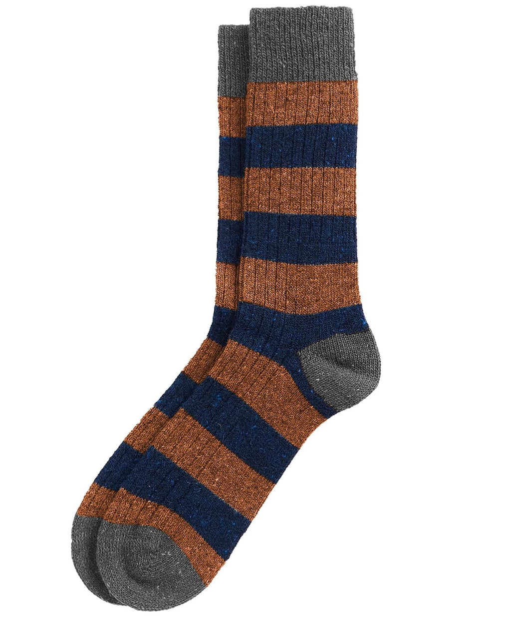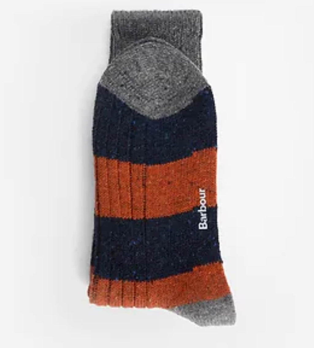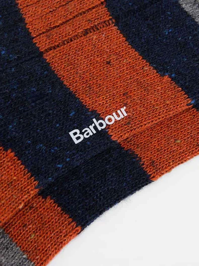 The Barbour Houghton Stripe socks are crafted in a luxury wool-blend and feature a wide striped design. Boasting a contrast heel and toe, these socks are finished with a printed Barbour logo to the sole of the foot.