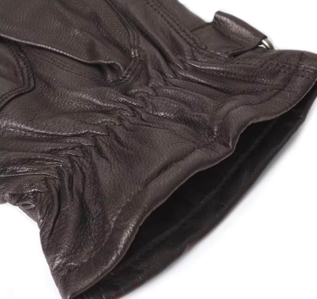 Created in fine leather with burnished finishing for added character, these gloves feature a stud-close cuff strap and a warm, insulated fleece lining for dependable warmth
