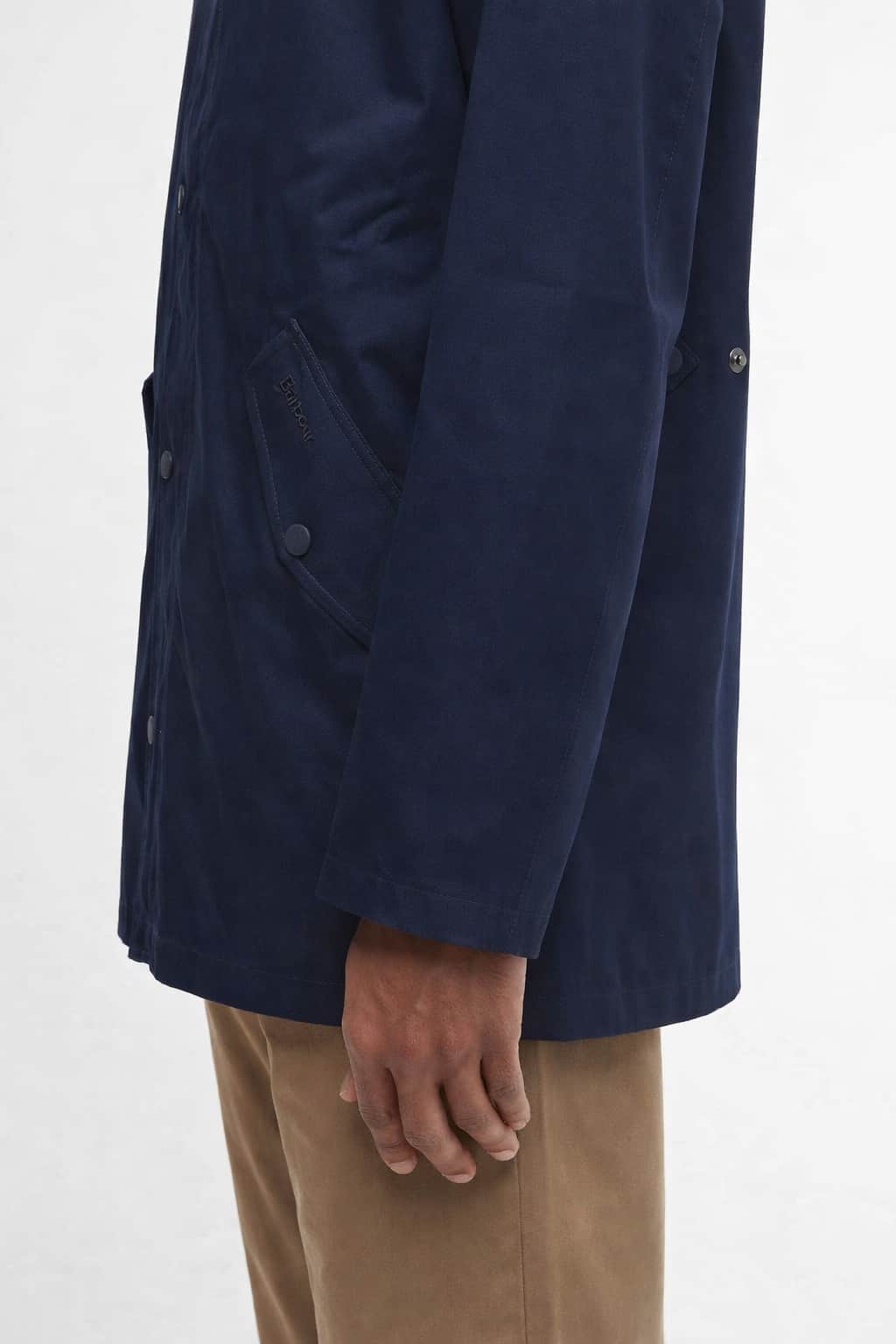 Designed with a structured stand collar, this jacket features a sleek jetted zip fasten pocket alongside lower welt pockets finished with stud-fastened flaps for secure storage. Subtle Barbour embroidery to the pocket flap adds an authentic finishing touch, while the signature tartan inner back yoke nods to the brand’s heritage.