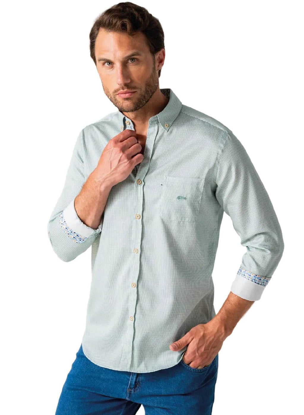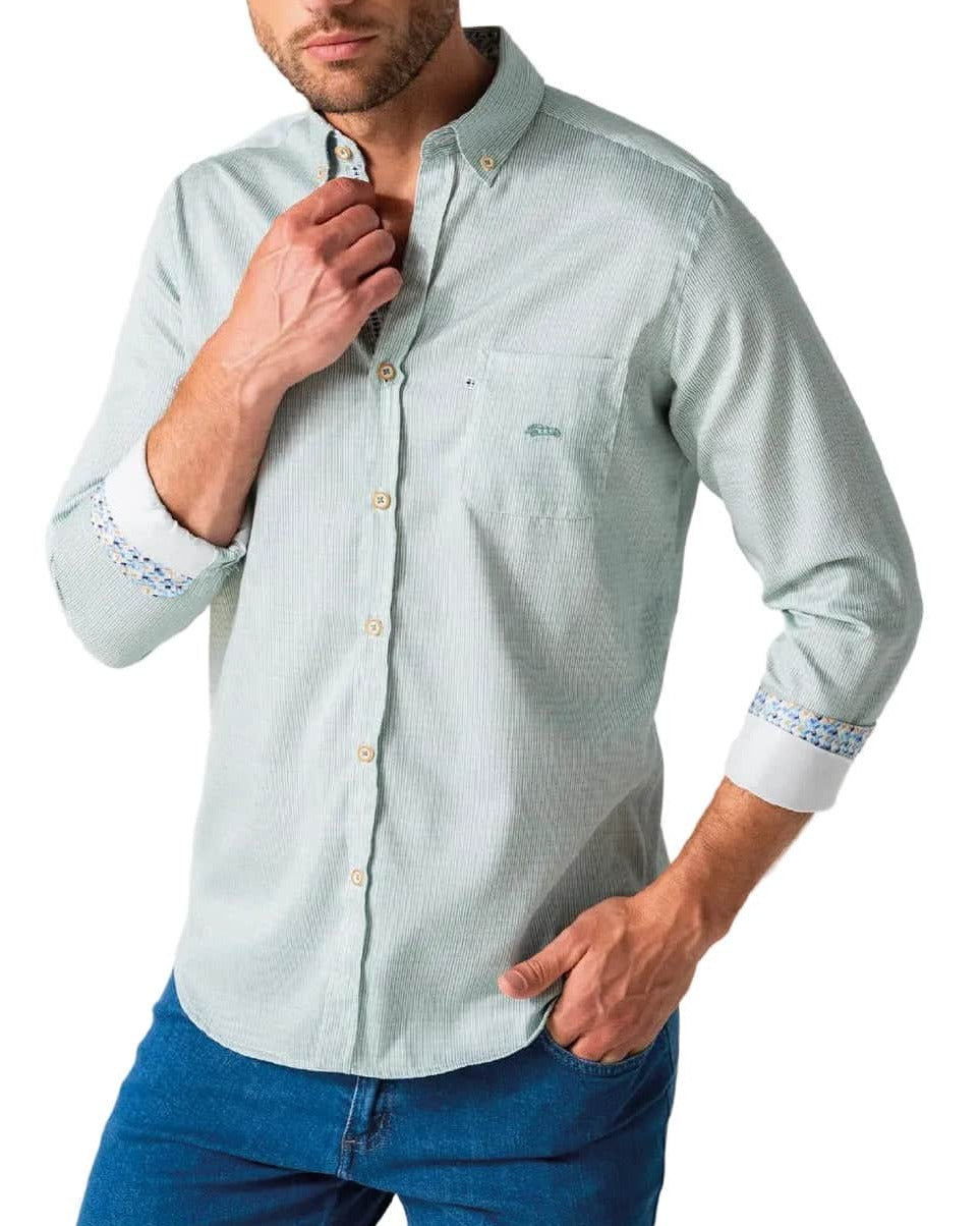 The standout feature is its stunning tight green stripe print, delivering subtle impact and versatile styling. Whether paired with dark denim for smart casual occasions or dressed up with tailored trousers, the Antes shirt strikes the ideal balance between relaxed and polished.