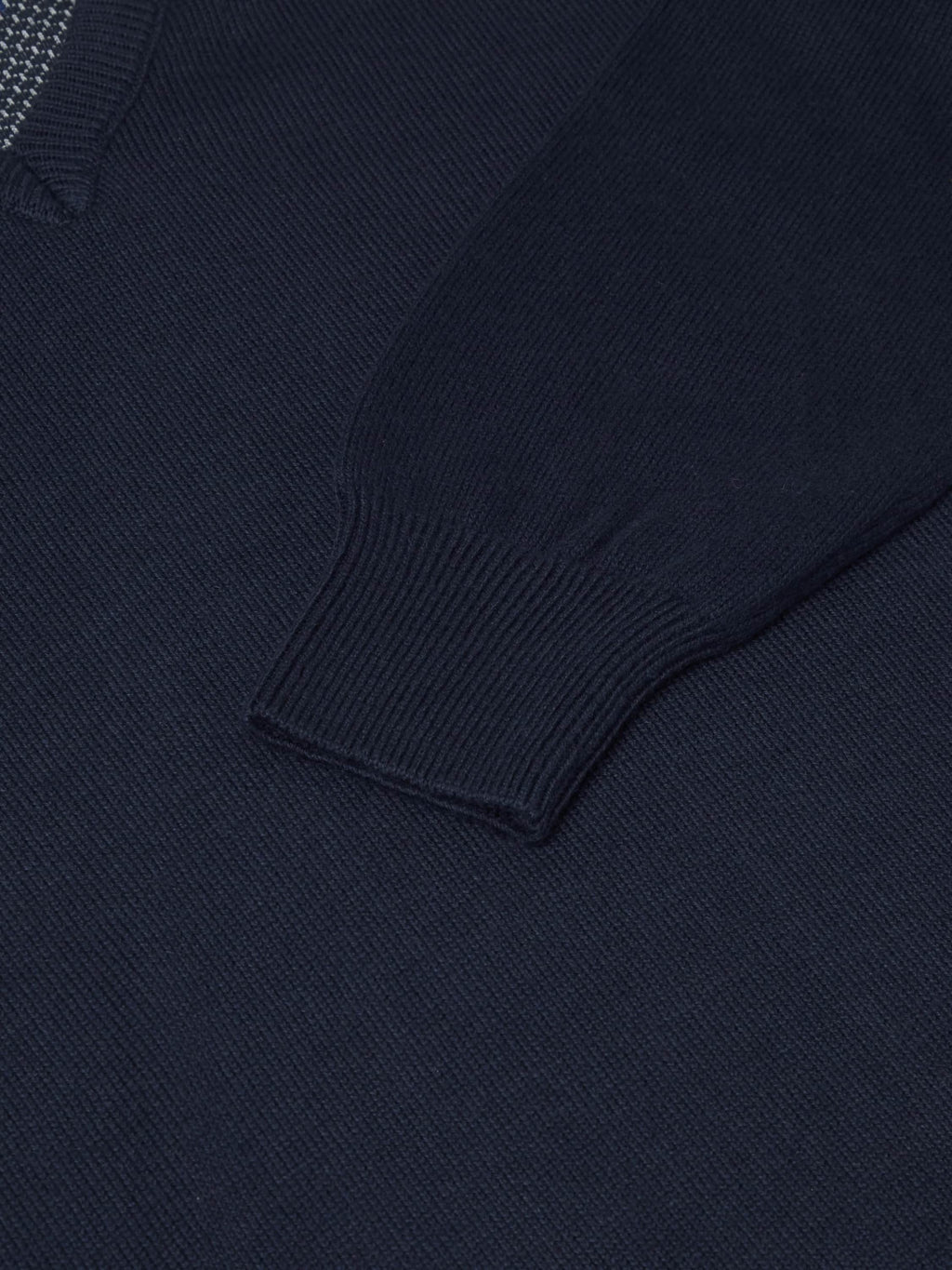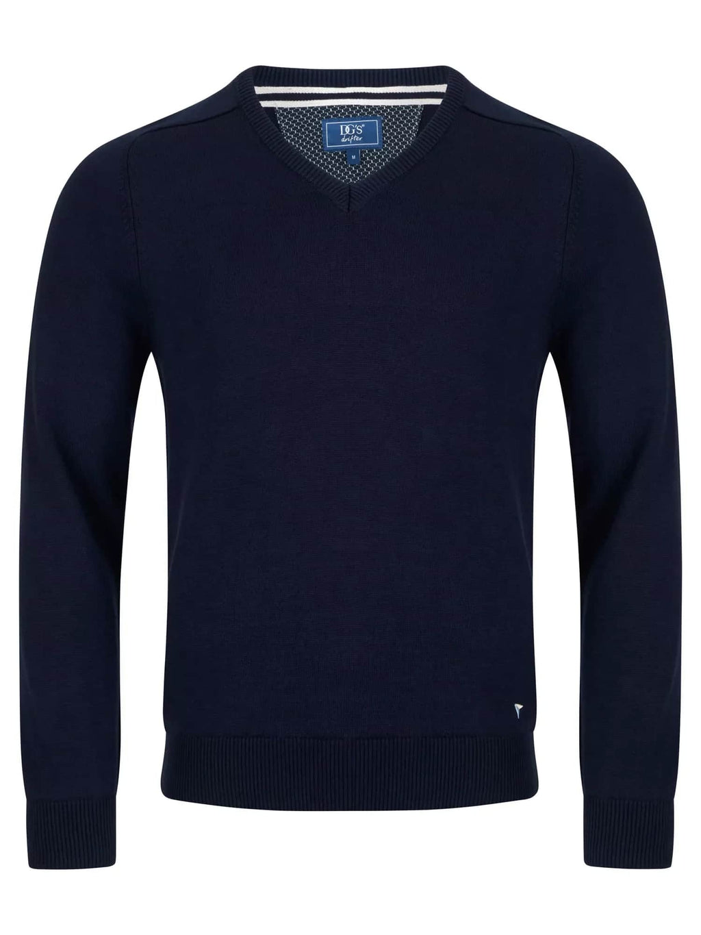 Dark navy regular fit cotton-mix v-neck long sleeve.