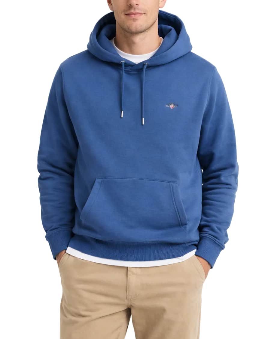 Crafted in a soft and durable cotton-rich fabric, this hoodie features a small embroidered GANT shield logo on the chest, delivering subtle brand recognition with a refined finish. The regular fit offers a clean, tailored silhouette without compromising on comfort, ideal for layering over a T-shirt or under a casual jacket.