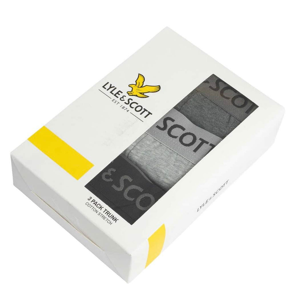 The Lyle & Scott 3 Pack Barclay Trunks Grey/Black deliver comfort and everyday reliability. Each pair features a branded elasticated waistband for a secure fit and cotton stretch fabric for flexibility and breathability. Designed with a supportive fit, they provide ease of movement throughout the day.