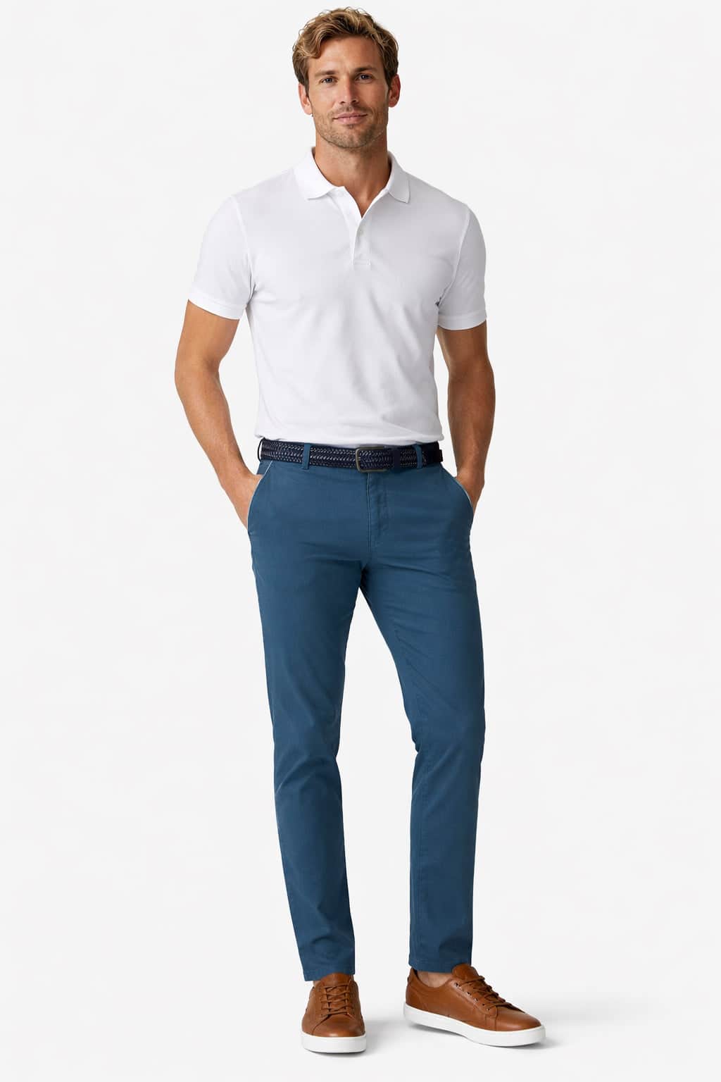 Model New York is a sporty flat front pants. The contemporary model has a footprint of 38 centimeters in circumference. The model has a calm and neutral design and the fit can be characterized as a modern fit.