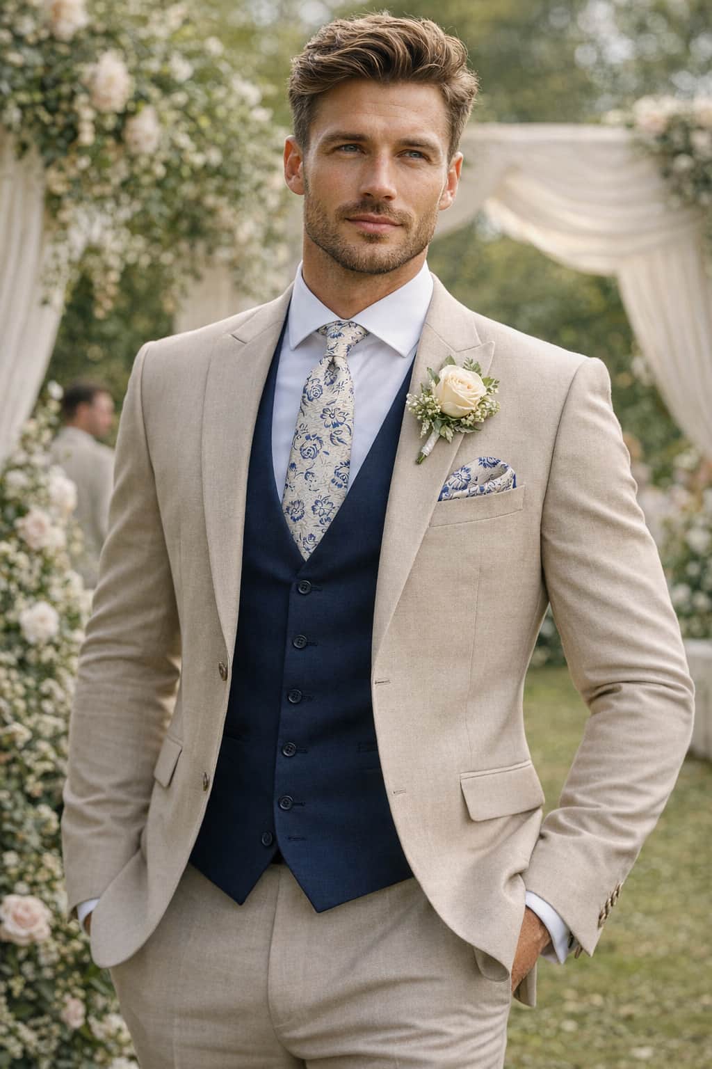 Perfect for wedding guests, proms, race days, or any formal occasion, this coordinated set pairs seamlessly with classic suits, three-piece tailoring, and smart blazers. Its clean, versatile design makes it an excellent choice for both traditional and contemporary formal looks.