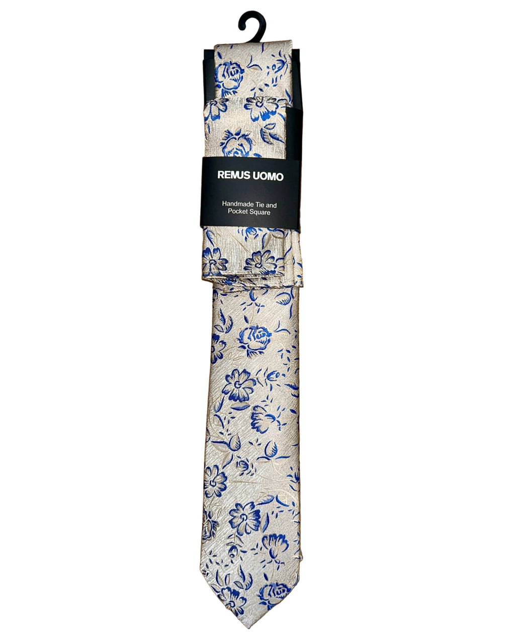 Remus Uomo Tie & Pocket Square Set Beige/Blue Floral
