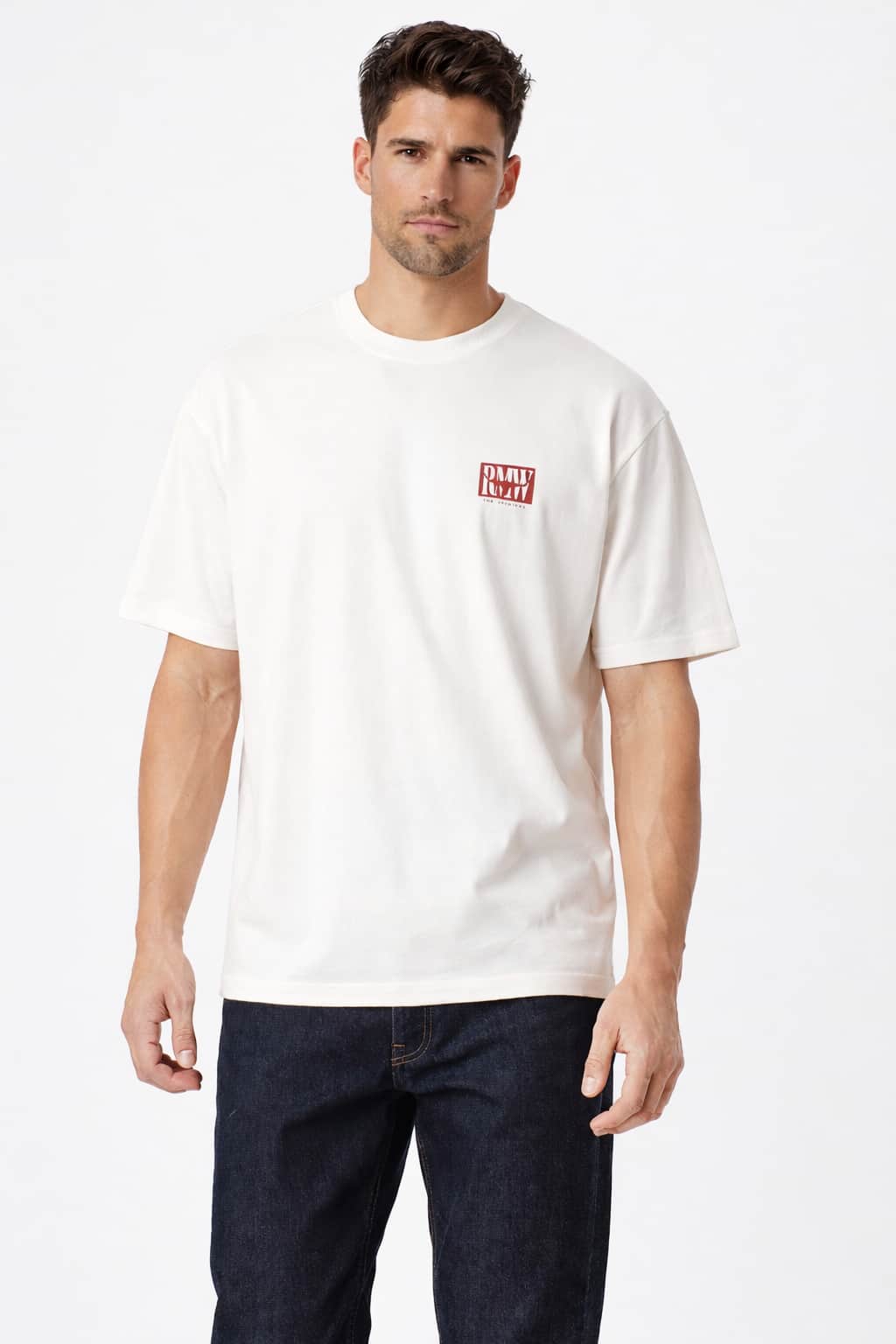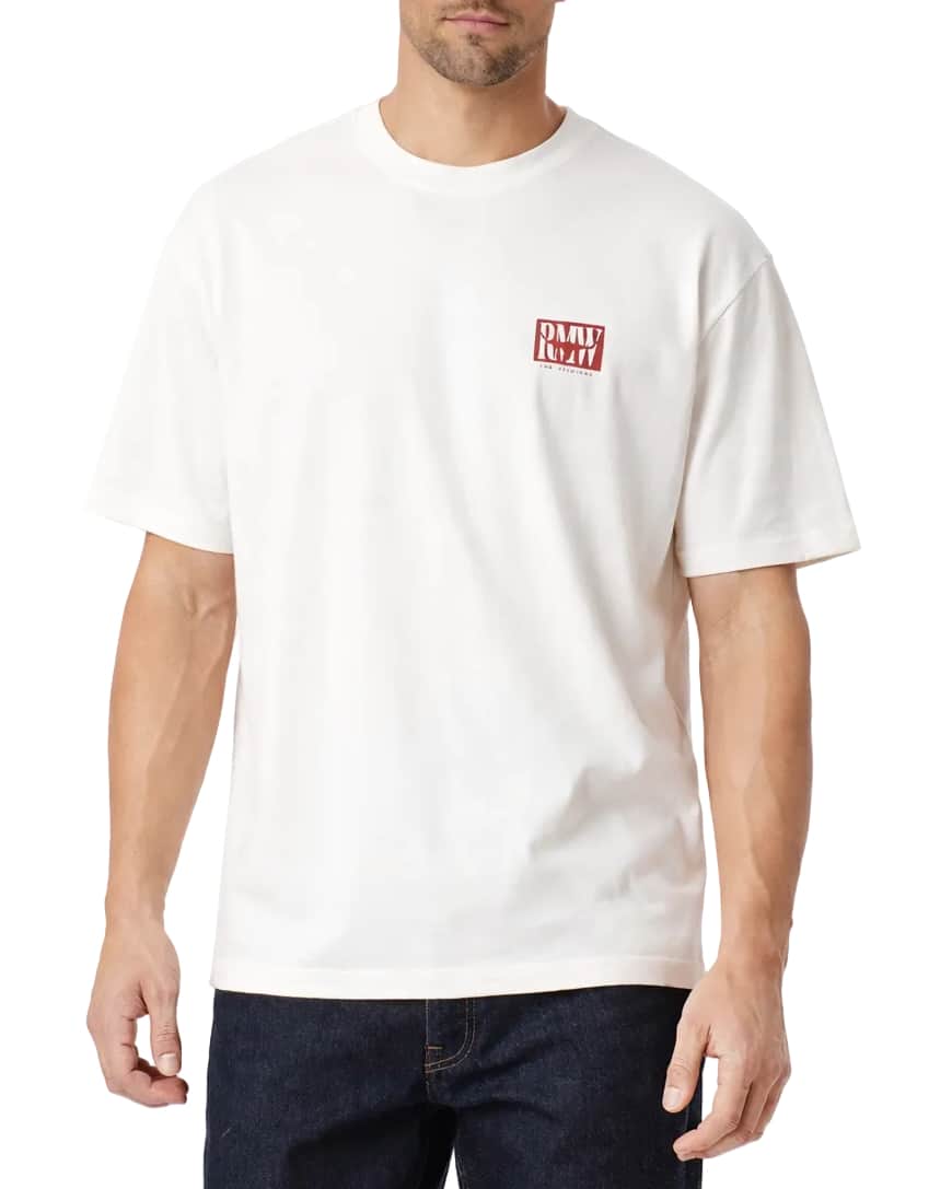A classic ribbed crew neck and regular short sleeves create a timeless silhouette, while branded prints at the chest and back add a confident, contemporary edge. Finished with a straight hem, this versatile tee pairs easily with jeans, chinos, or shorts for laid-back, off-duty style.