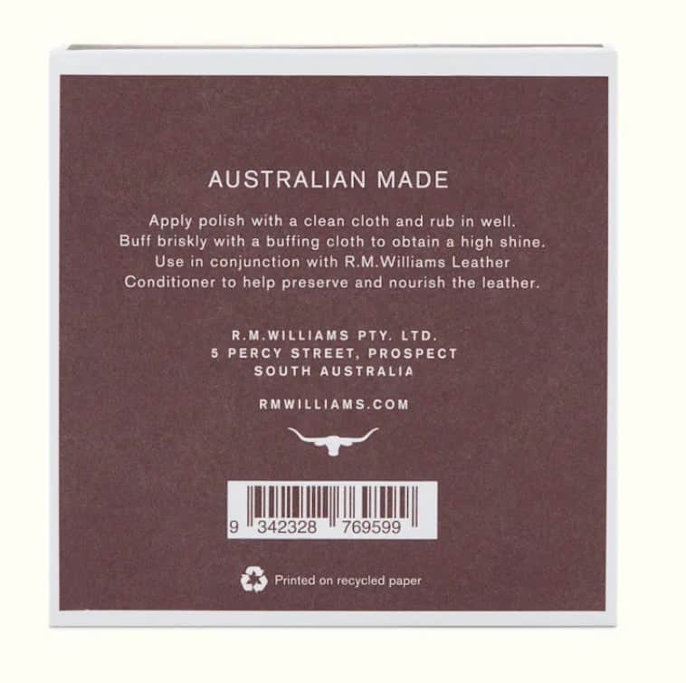 The Stockman's Boot Polish is made from high quality, alcohol-free ingredients and is designed to restore colour and shine to scuffed, well-worn boots. With a variety of colours to match your boots, this is an R.M.Williams essential.