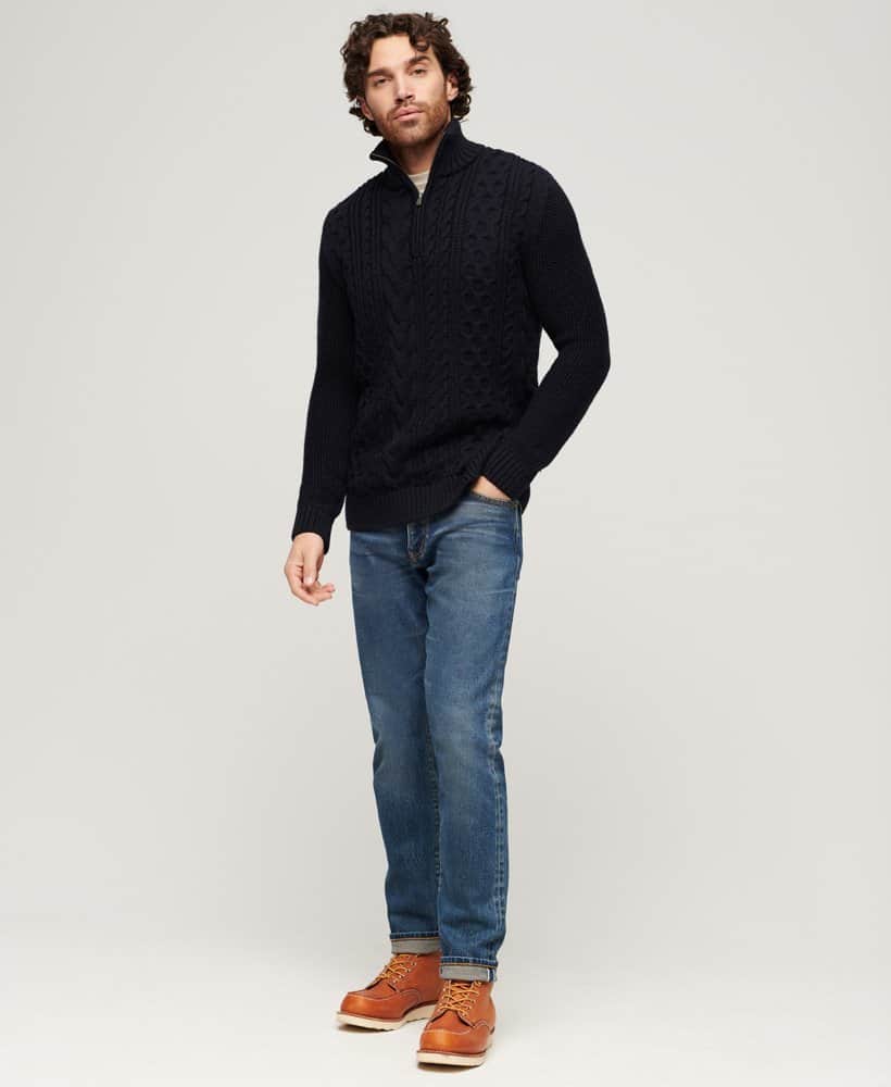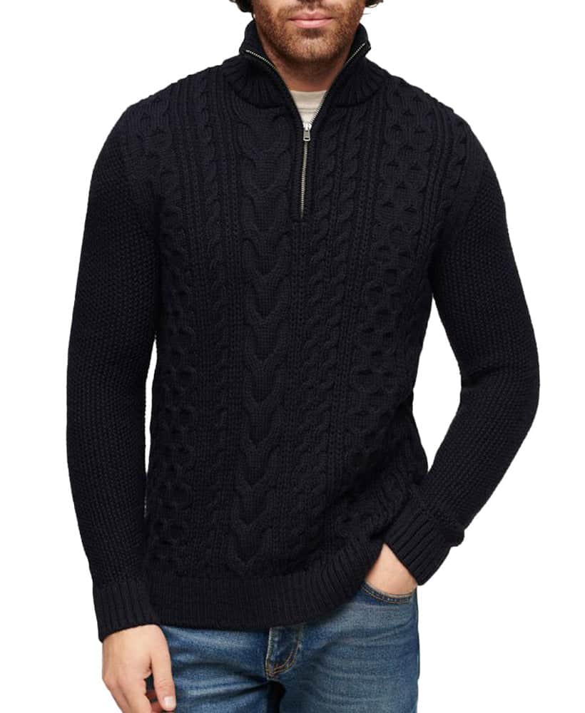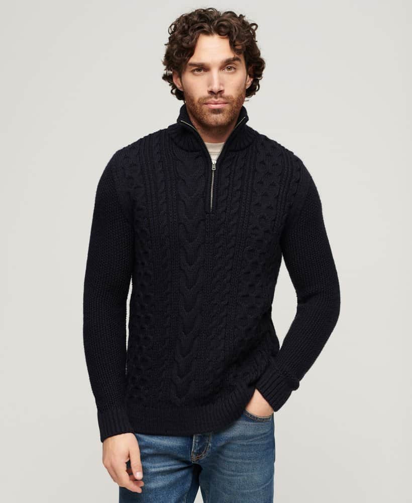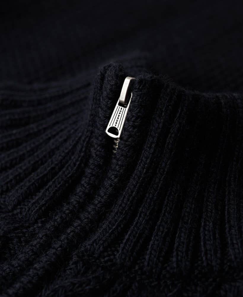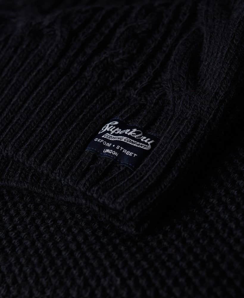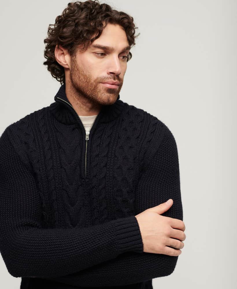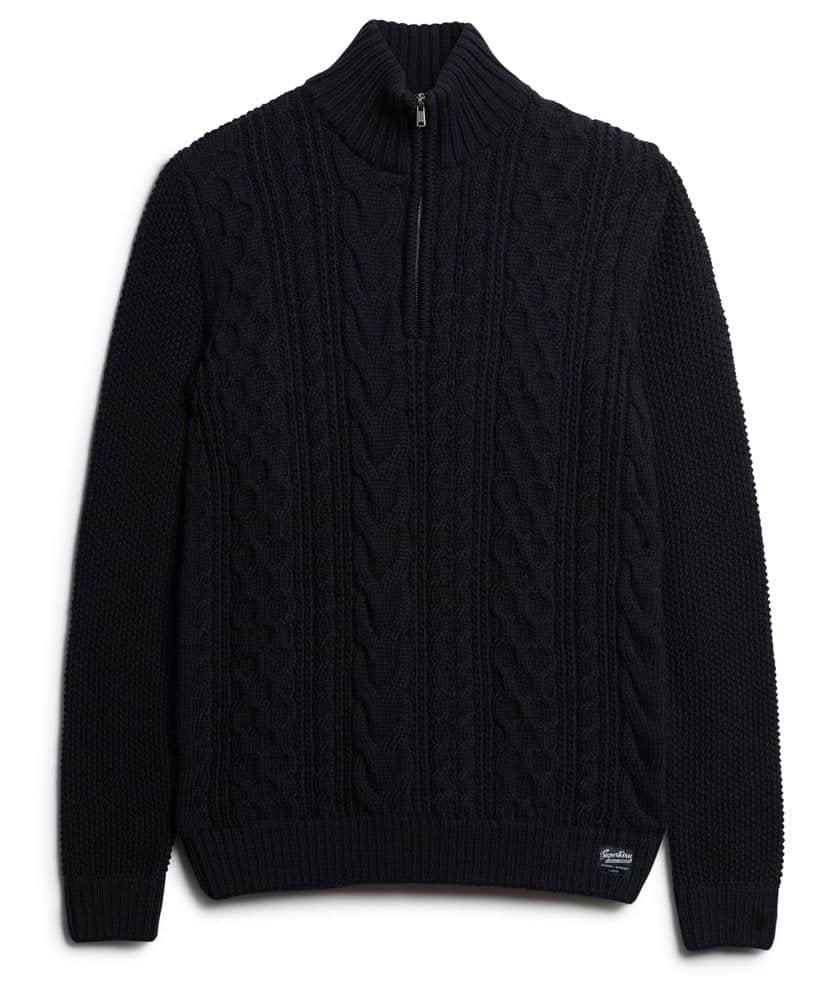 With its zip fastening, ribbed cuffs, and hem, this jumper boasts both practicality and sophistication. The intricate cable knit design adds a touch of timeless charm, elevating your overall look. Complete with a signature logo patch, this jumper is a true testament to quality craftsmanship.