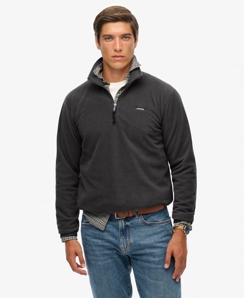Superdry Mens Polar Fleece Half Zip Charcoal